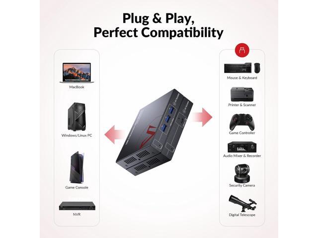 - Remote USB 3.2 Gen1 Peripheral ControlConnect up to 4 USB 3.2 devices remotely to your PC. Ideal for printers, scanners, game controllers, security cameras, audio mixers, digital telescopes, and more. Enjoy 10 times faster transmission than USB 2.0, with full support for all USB protocols thanks to its pure hardware architecture.