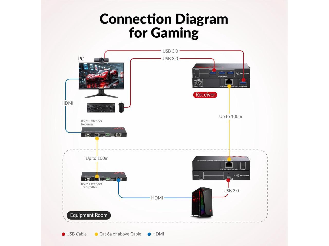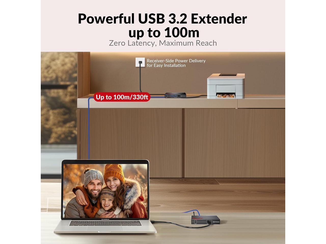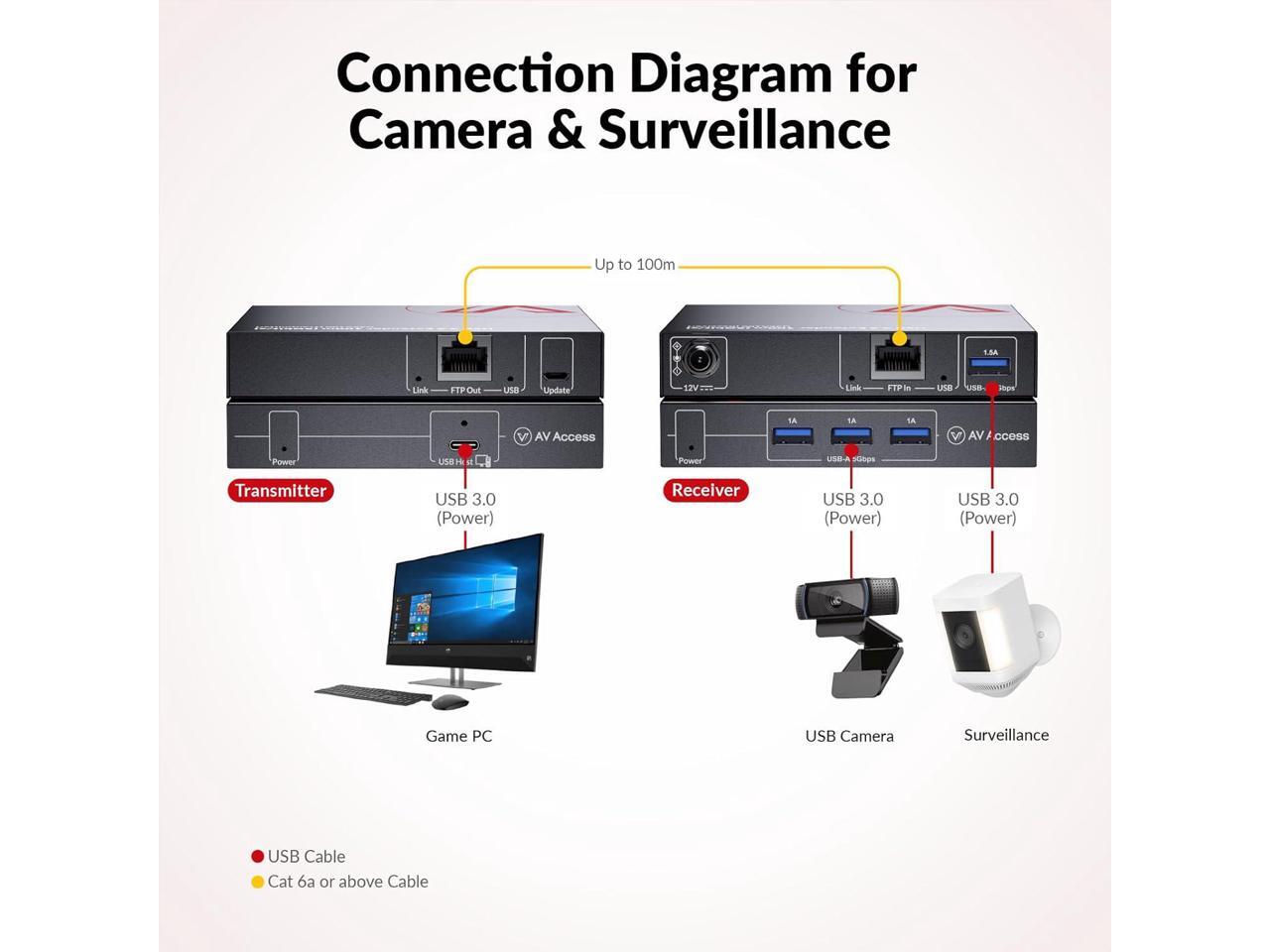 - Ultra-Long Transmission Range & Zero LatencyExtend your USB 3.2 signals up to 330ft (100m) over a Cat 6a or higher cable with zero latency. This USB over ethernet extender is perfect for office work, gaming, surveillance, live streaming/recording, astronomical observation, and more.