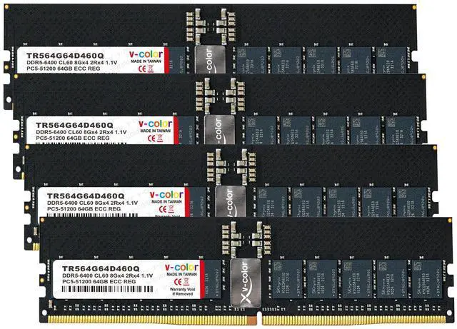 V-COLOR 256GB (64GBx4) DDR5 6400MHz CL60 1.1V ECC Registered RDIMM Server/Workstation Memory with Hynix IC (TR564G64D460Q)