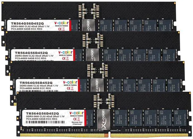 V-COLOR 256GB (64GBx4) DDR5 5600MHz CL52 1.1V ECC Registered RDIMM Server/Workstation Memory with Hynix IC (TR564G56D452Q)