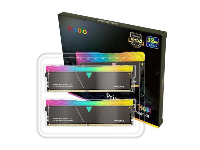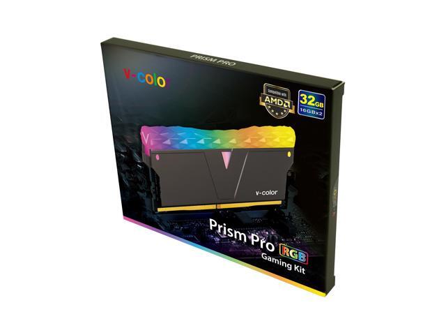 v-Color Prism Pro DDR4 32GB (2 x 16GB) 3600MHz (PC4-28800) CL16 AMD Optimized RGB Gaming Desktop Ram Memory Module UDIMM Hynix IC Jet Black(TL1636816C-E6PRKWK)
