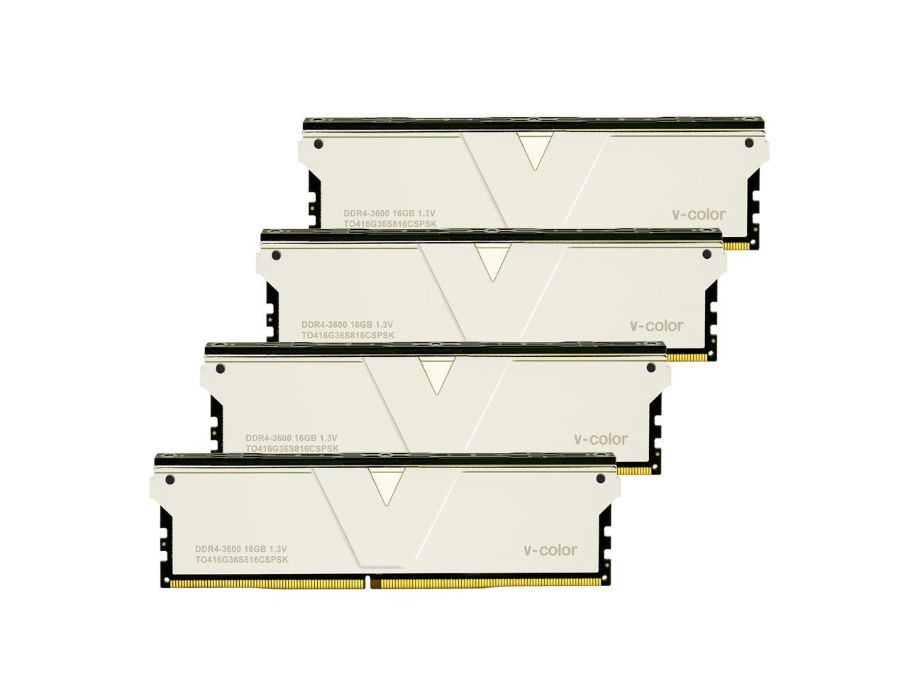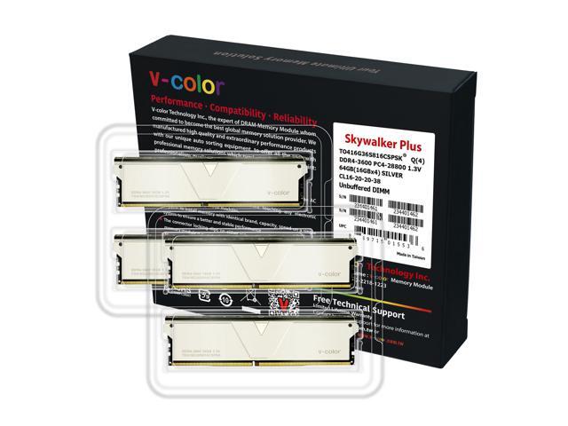 V-COLOR Skywalker Plus DDR4 3600(PC4 28800) 64GB (4x16GB) CL16 Desktop Memory for Workstation (HEDT), Ultra-Low Timing, 288-Pin, TO416G36S816CSPSK