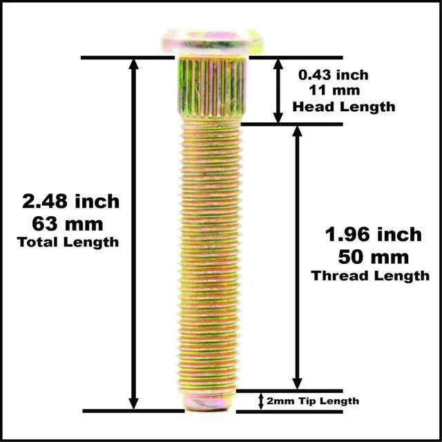63mm Long Extended Wheel Stud For Honda Accord m12x1.5x63 Knurl : 12.20mm = 0.480 inch 10pcs Studs Year 1995-2016 V-Project