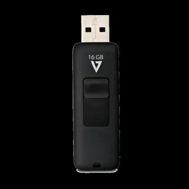 The V7 16GB USB 2.0 Flash Drive offers an easy to use cap-less . slide out design that will keep your USB connector free of dirt and . dust without having to keep track of a cap. Theses drives allow . you to store your important information in an easily transportable . thumb drive so you can carry it throughout the day from your . home, in the car and all around the office. Ranging in size options . of 4GB, 8GB, 16GB and 32GB there's a size option for all your . needs. Backed by a limited 5 year warranty these reliable drives . provide peace of mind and freedom to transport your data with ease.