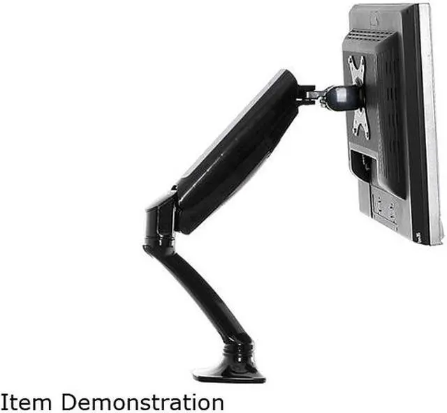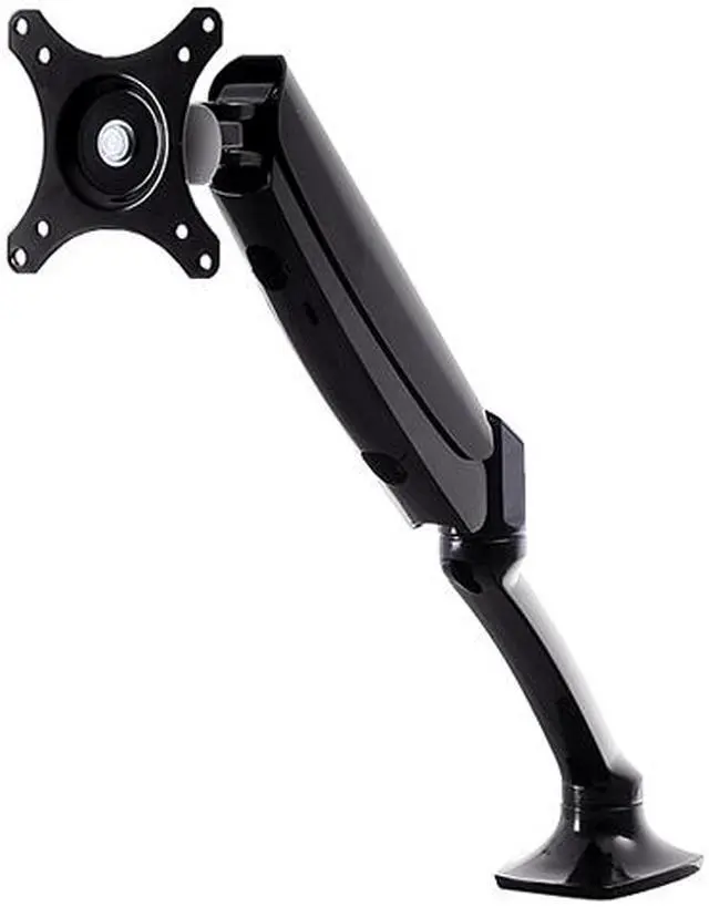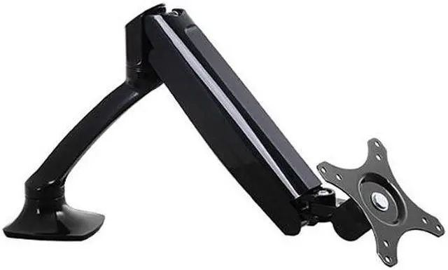The V7 full motion gas spring mount connects directly to your desktop or table and hold flat panel displays from 10" to 24". This high quality mount allows you to swivel and rotate your display into nearly any position while the self-stabilizing gas spring keeps your image level. The cable management channel keeps video and power cables organized and out of sight. Installation is easy with the clamp or gourmet mounting hardware included.