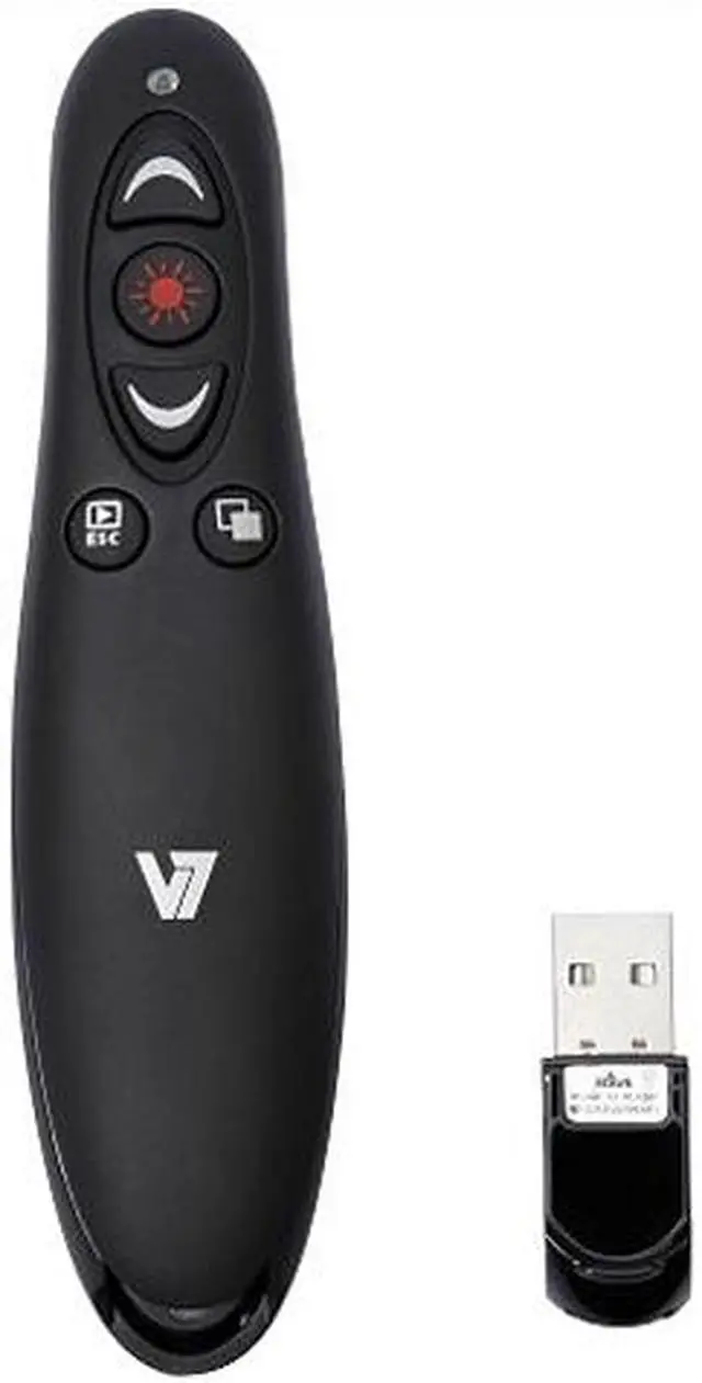 MAIN OVERVIEW FEATURES: Pointing Device Connectivity Technology: WirelessPointing Device Wireless Technology: Radio FrequencyWireless Operating Frequency: 2.40 GHzNumber of Total Buttons: 5Pointing Device Host Interface: USBColor: BlackHeight: 1.75" (44.45 mm)Width: 3.75" (95.25 mm)Depth: 6.60" (167.64 mm)Weight (Approximate): 38 gPackage Contents: Professional Wireless Presenter with Laser Pointer and microSD Card Reader USB Receiver 2 x AAA Batteries User Manual Presenter Case Environmentally Friendly: YesEnvironmental Certification: RoHS,WEEECountry of Origin: ChinaLimited Warranty: 2 Year