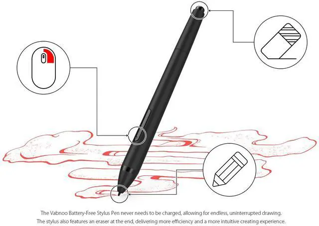 3.The Vabnoo Battery-Free Stylus Pen never needs to be charged, allowing for endless, uninterrupted drawing. The stylus also features an eraser at the end, delivering more efficiency and a more intuitive creating experience.