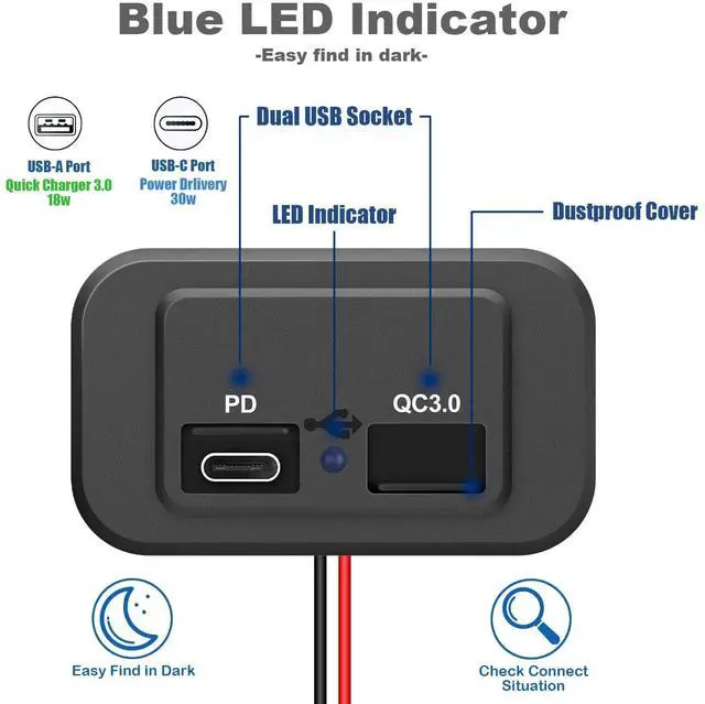 Vadaxx 12V/24V PD3.0 + USB 3.0 RV USB Outlets for Sale. 1PCS for 7.99USD. 2PCS for 12.98USD. 4PCS for 20.99USD.