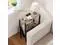 Storage pocket holds remotes magazines and snacks adding extra storage space.