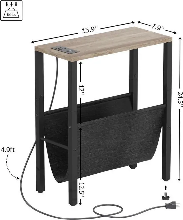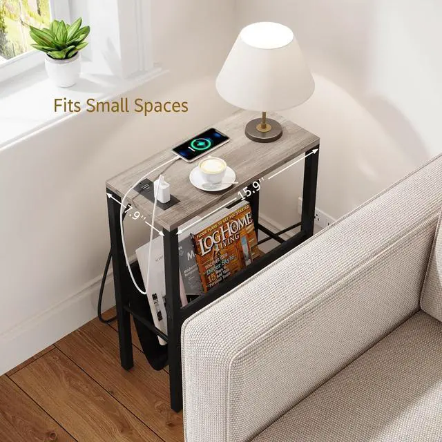 Side table with built-in 1 outlet, 1 USB port and Type-C for convenient device charging.