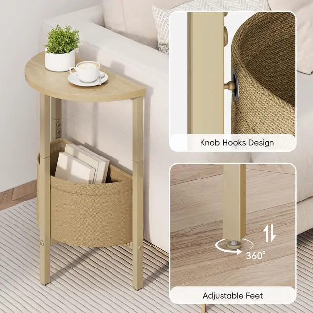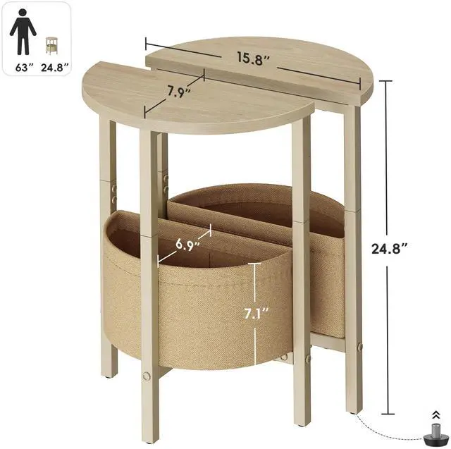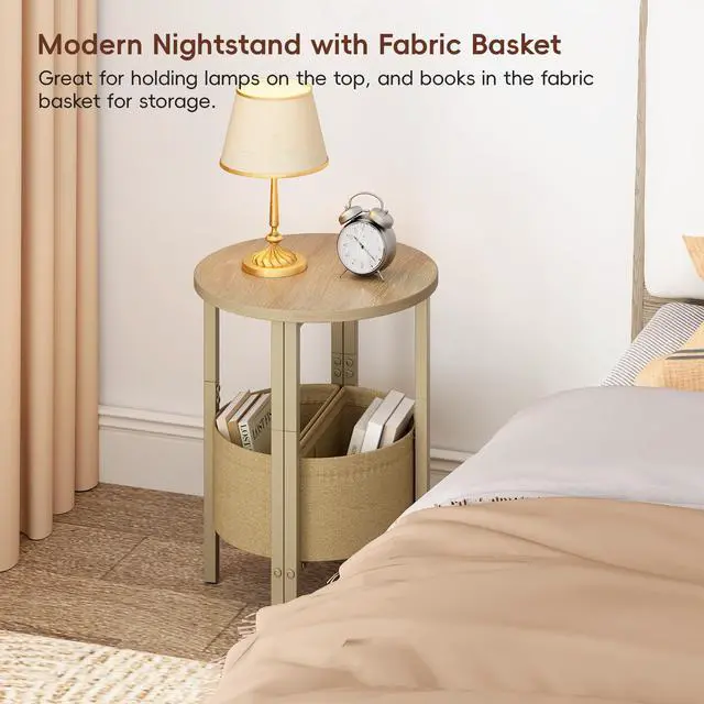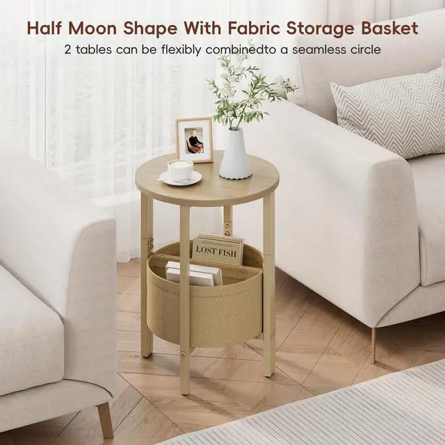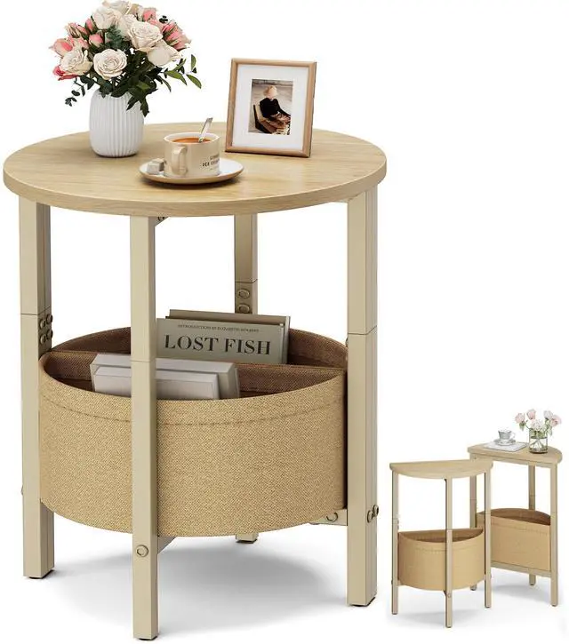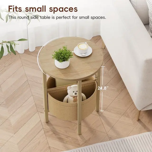 VAGUSICC Round End Table with Fabric Basket