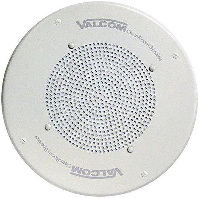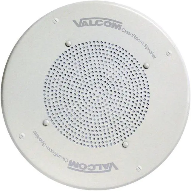 The Valcom Ceiling Speaker, V-1040 is a self-amplified and capable of reproducing voice paging in clean room environments. The V-1040 has a screwdriver adjustable volume control located on the 1 watt amplifier circuit board. The V-1040 has an 8-inch speaker.