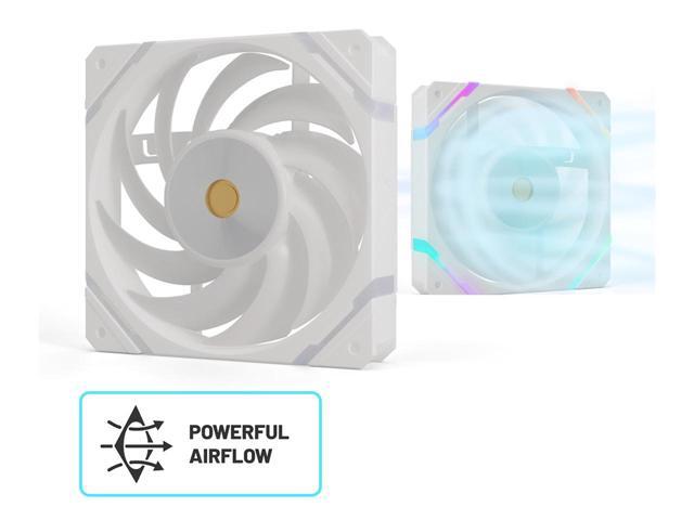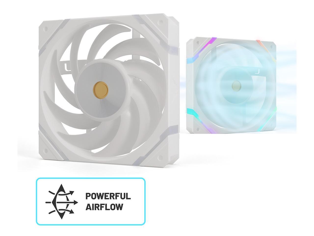 High-Performance Fluid Dynamic Bearing Fans: 3x High Static Pressure Valkyrie X12 radiator fans provide powerful airflow up to 80 CFM each, adjustable through PWM (800-2150 RPM ±10%) to deliver impressive CPU cooling performance with a maximum noise level of only 29dBA and 3.14mmH2O static pressure.