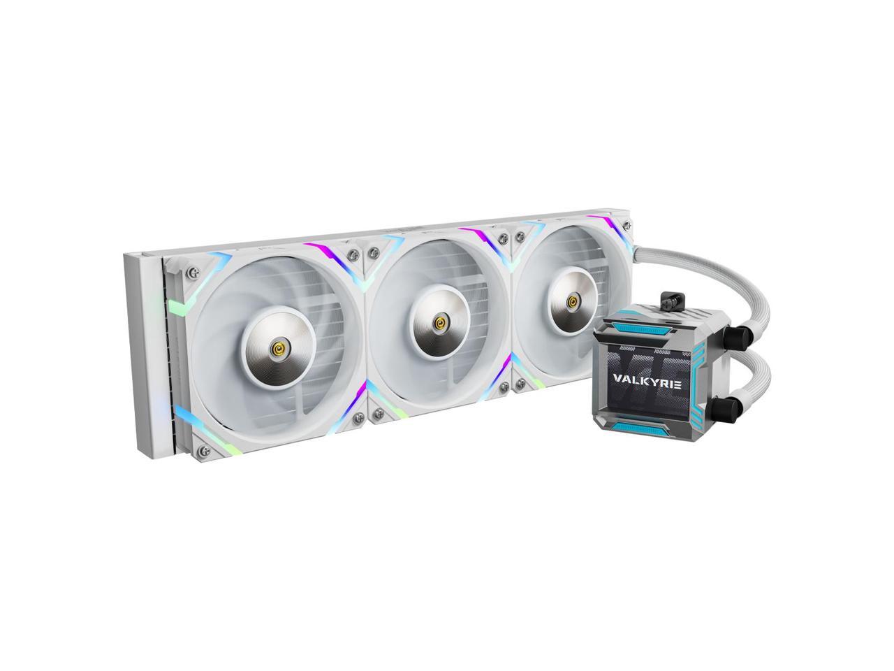 Valkyrie Syn 360 White - AIO CPU Liquid Cooler - LCD Screen Inside PC - 3x Fluid Dynamic Bearing X12 Fans, 360mm Water Cooler, Compatible w/ AMD AM4/AM5, Ryzen 7 7800x3d, Intel 14900k, LGA1700/1200