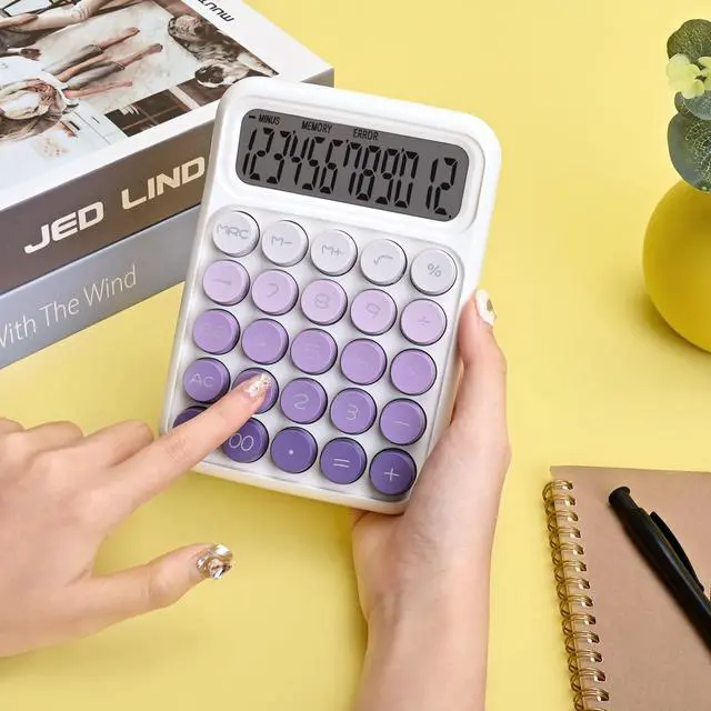 12-digit large display general purpose desktop calculator for home, school, office or store, or even commercial use. The sophisticated design adds a touch of color to your desktop, making this calculator an excellent present for family and friends.