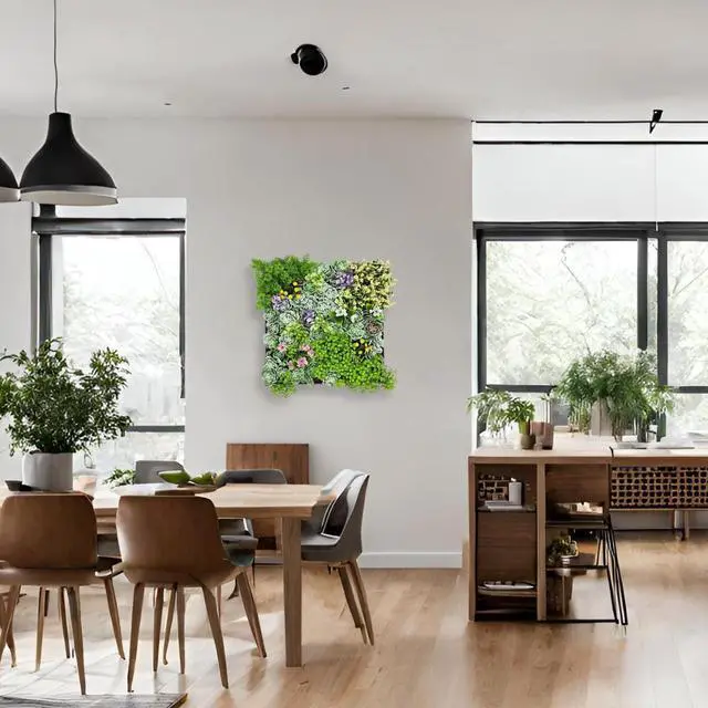 Enjoy the look of evergreen nature and modern design with virtually no maintenance required. Create larger arrangements by placing tiles adjacent to each other to make a stunning backdrop in your home,, office, or business.