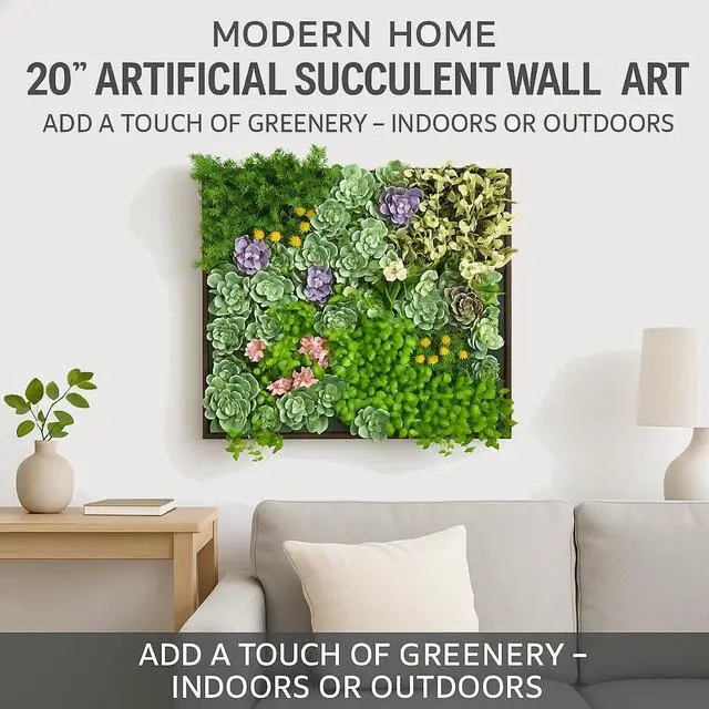 Instantly elevate your space with the Modern Home 20-Inch Artificial Succulent Wall Art.