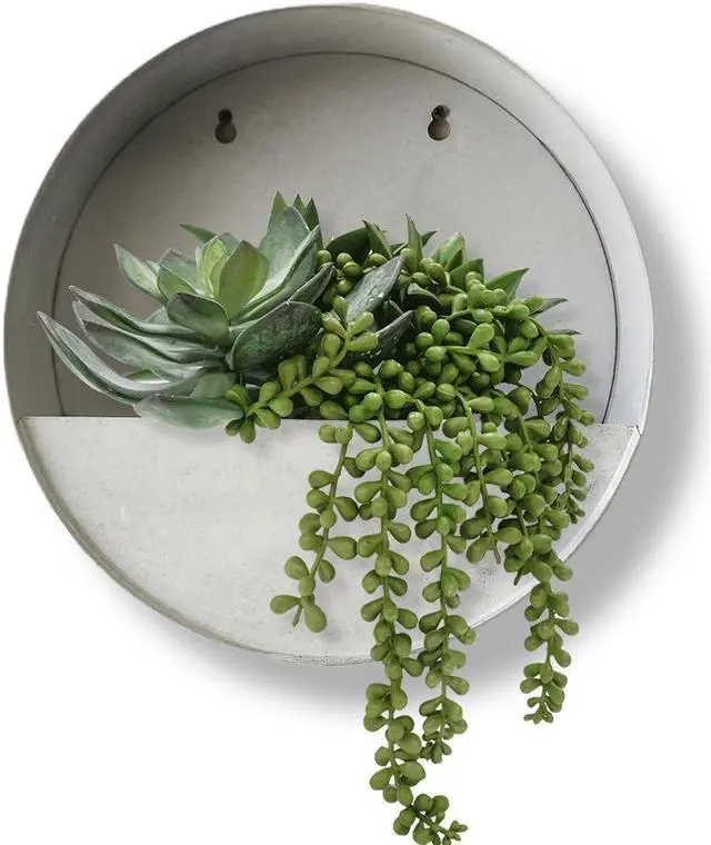 The Modern Home Living Wall Succulent Planter will create a beautiful conversation piece anywhere in your home or office be it indoors or outdoors. Constructed of galvanized steel with a variety of patinas, each wall planter offers a whimsical wall-mounted planter in various sizes designed to hold individual succulents or other small plants. Each round planter can be call mounted using the 2 pre-drilled wall slots. The Round Living Wall planter is offered in a variety of colors and sizes. Seasonal succulents are an aesthetically pleasing living plant with many variations. It is incredibly easy to make a quick arrangement from loose succulents and mix/match as you create your own living artwork.