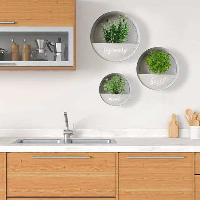 Succulents are low maintenance and are great for your health. Take the beauty from outdoors into your home or office. Also great for creating indoor herb gardens right in your kitchen. Customize each planter to create an easy-to-access garden of mint, basil, rosemary, thyme, and more. Succulents/plants not included. The round planter is offered in a large size measuring 15" in diameter by 3.7" deep. The medium size is 12" in diameter by 3.7" deep and the small size is 8" in diameter and 3.7" deep. Offered individually or sold as a set of three with one of each size.