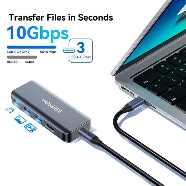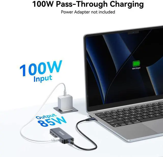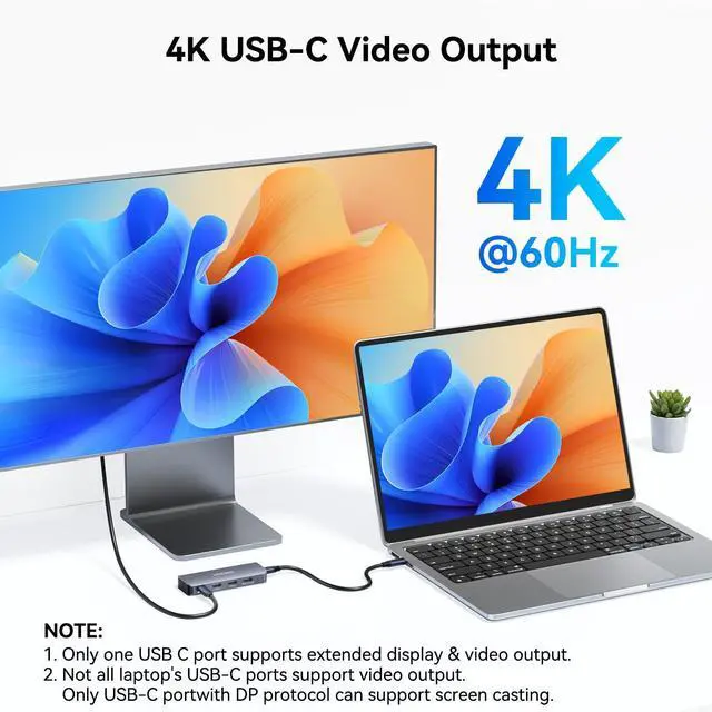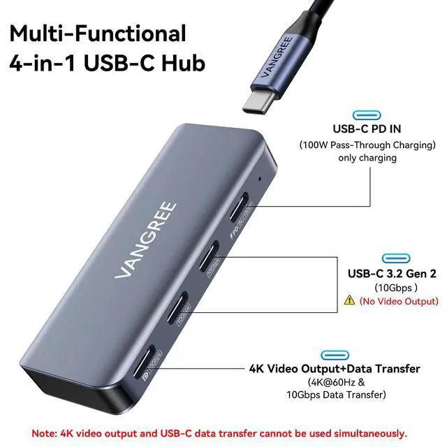 Get 1× 4K@60Hz USB-C video output port, 2× USB-C 3.0 10Gbps ports, 1× 100W PD pass-through charging port. Enhance your setup with this essential device that combines functionality with modern aesthetics.