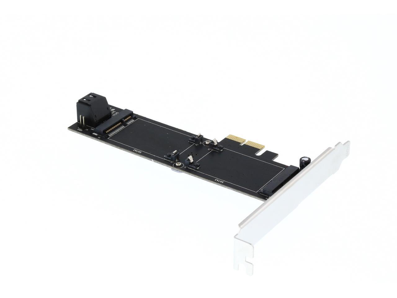 | Features | Two 7Pin SATA connectors and two mSATA (mini PCIe) socket on board Mounts two mSATA SSDs and two SATA HDDs/SSDs in PCIe slot Compliant with PCI-Express Specification v2.0 and backward compatible with PCI-Express 1.x Compliant with Serial ATA Specification 3.0 PCI Express x2 interface, and compatible with PCI Express x4, x8 and x16 slots Supports communication speeds of 6.0Gbps, 3.0Gbps, and 1.5Gbps HyperDuo technology to maximum SSD performance Support TRIM to extend SSD durability Hot Plug and Hot Swap on SATA connection Supports Port Multiplier FIS/CBS and Native Command Queuing (NCQ) Support ATA and ATAPI commands Compatible with SATA III/II/I Hard Drives Support RAID function: RAID 0, RAID 1, RAID 10 and HyperDuo |