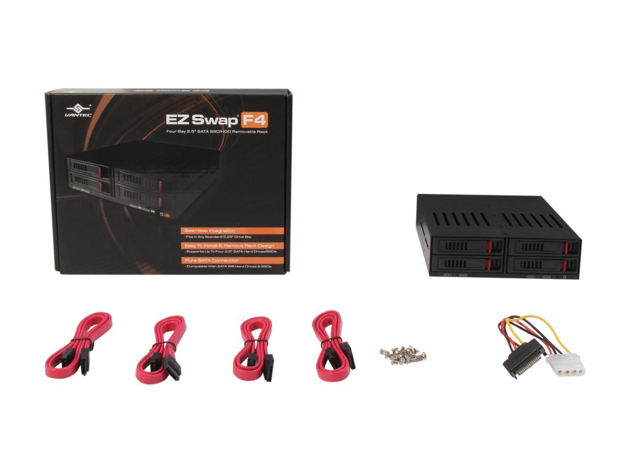 Vantec EZ Swap F4 MRK-425ST-BK 4 Bay 2.5" SATA 6Gb/s SSD/HDD Removable Rack, SATA III ready (Supports 9.5 & 12.5mm height SSD/HDD)