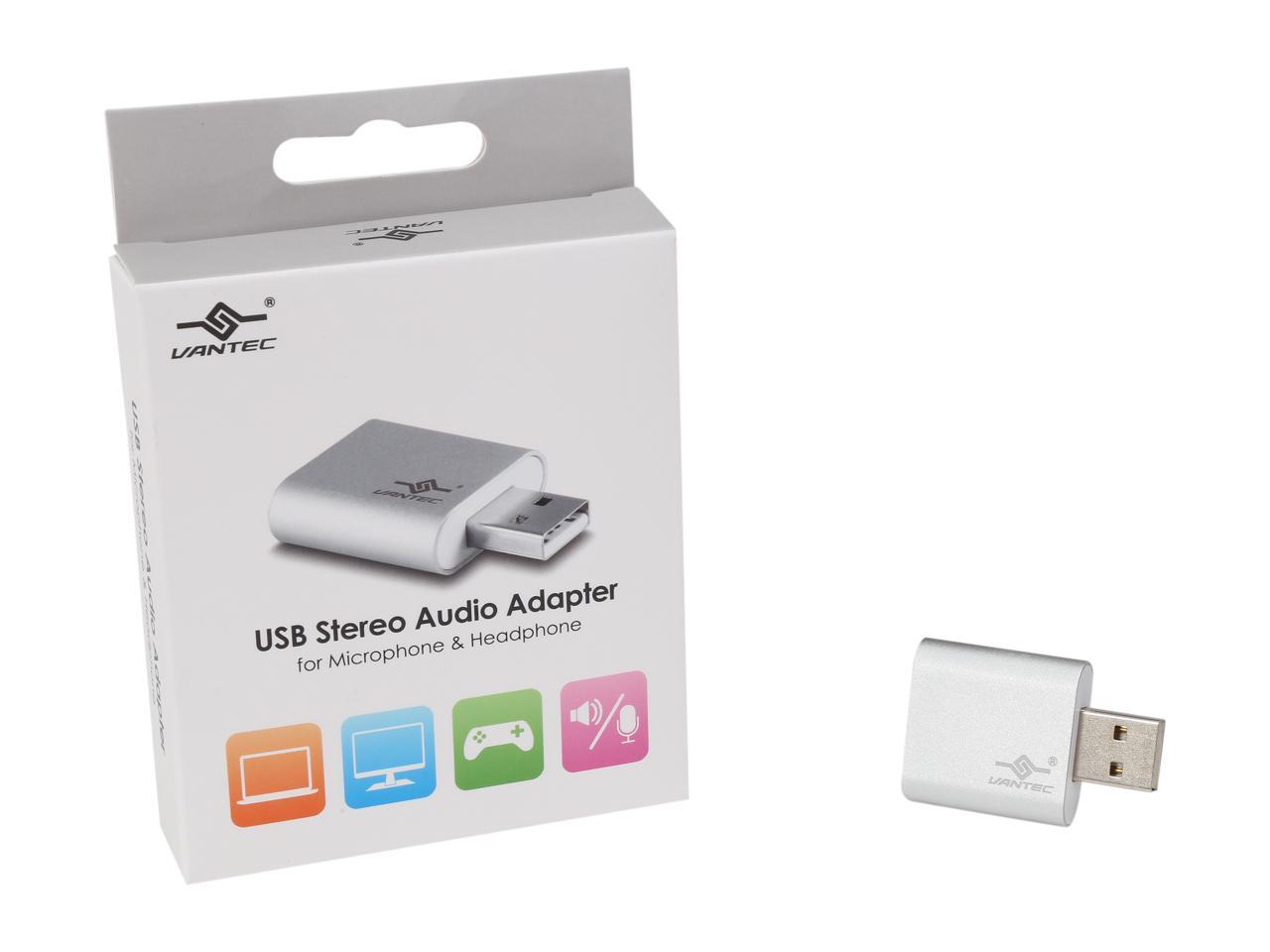 VANTEC NBA-120U Aluminum USB External Stereo Audio Adapter for Windows and Mac. Plug and play No drivers Needed