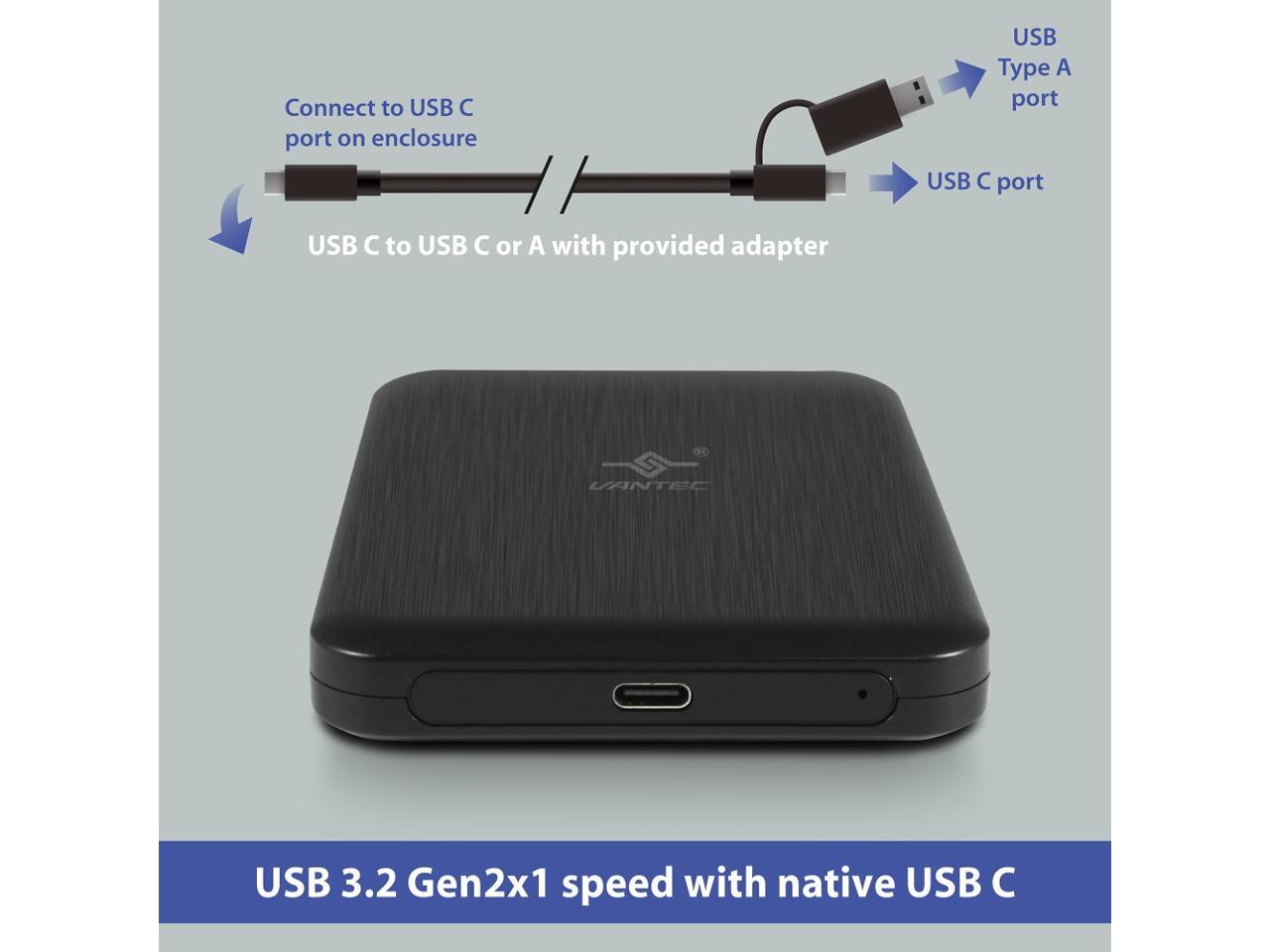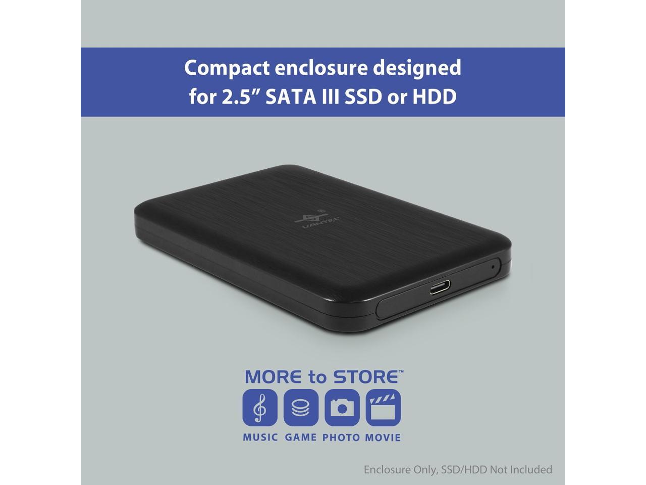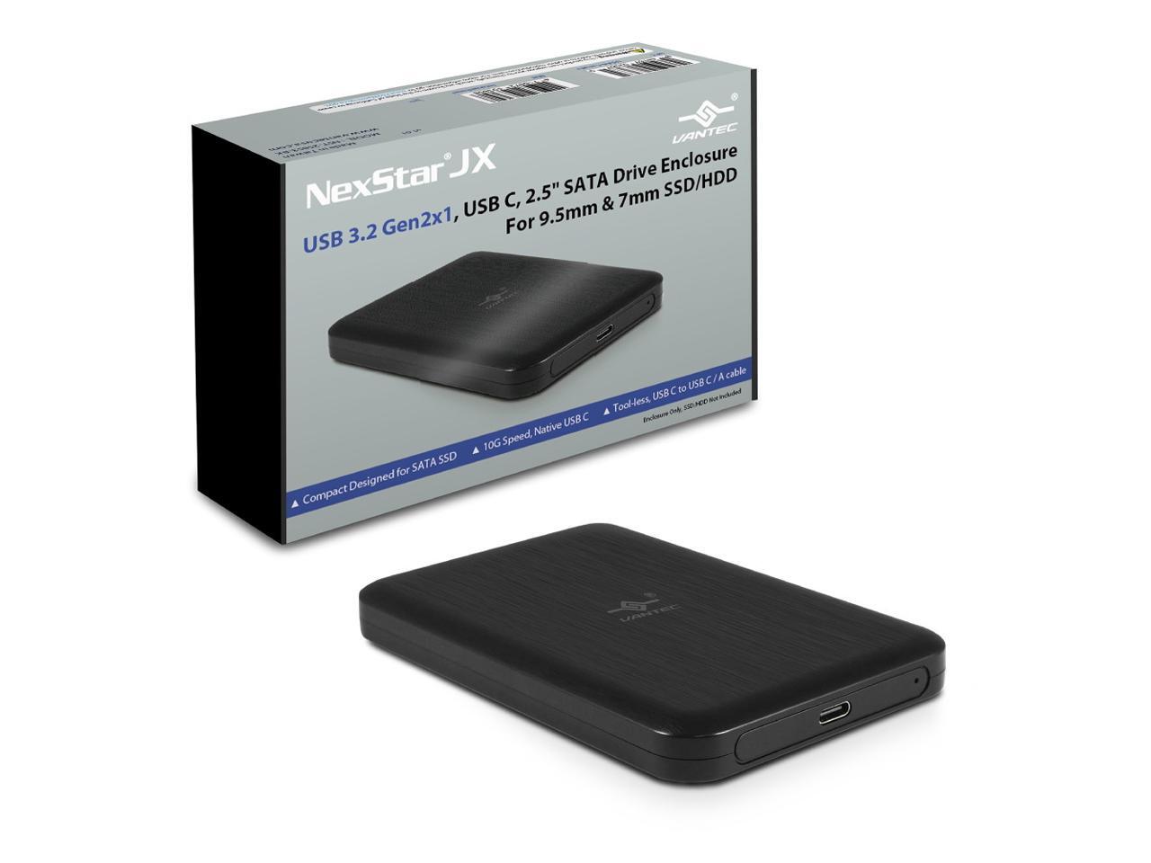 Vantec NexStar JX Series USB 3.2 Gen2x1 (10Gbps), USB C, 2.5" SATA Drive Enclosure For 9.5mm & 7mm SSD/HDD NST-258S3-BK