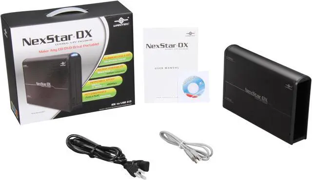 With the Vantec NexStar DX External 5.25" Enclosure, you can easily add any 5.25" IDE Device to your existing system. The NexStar DX connects to your computer through USB 2.0, offering speeds up to 480Mbps and eliminating the need to open your system! The NexStar DX is perfect for anyone looking to add any 5.25" device, such as a DVD burner, to a notebook or desktop computer. Because you don't have to open your computer, you don't have to worry about voiding your existing warranty or dealing with messy wires. The integrated fan and aluminum case also keep your device cool and operating at optimum conditions. The NexStar DX External 5.25" Enclosure is the smart way to upgrade your computer.