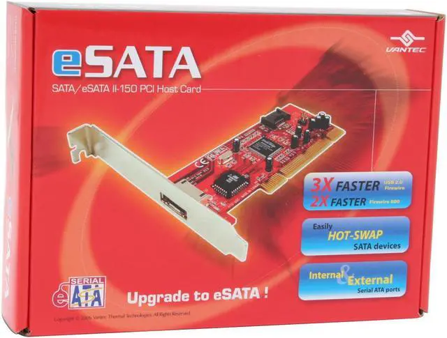 | Features | Easily add SATA/eSATA to any system with an open PCI slot Supports Hot-swapping: Plug and play without rebooting! LED drive activity header for each port |