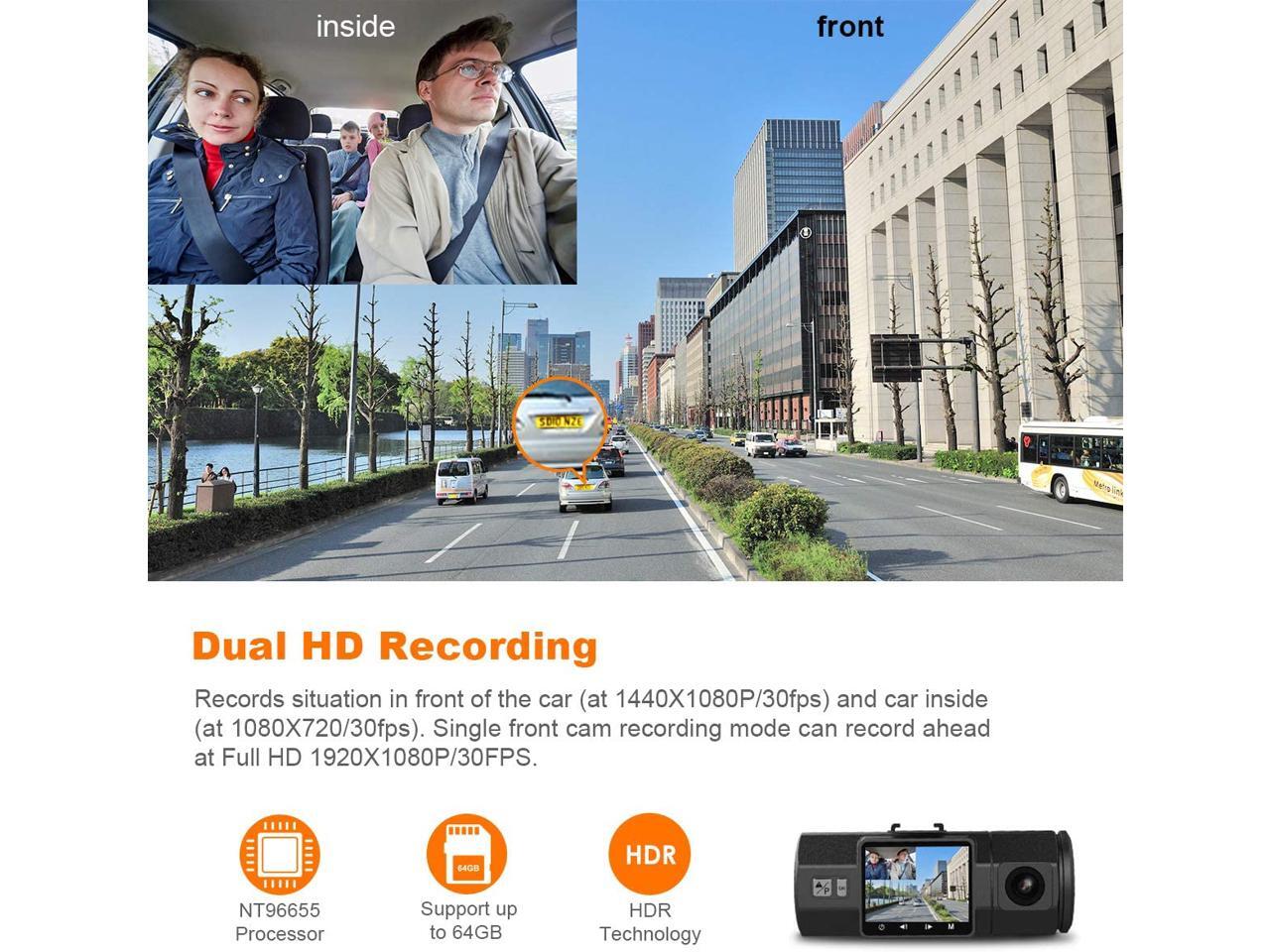 - Two lenses offer you full protection on the road! Full HD 1080P @30fps of front camera plus 720P @30fps of back camera present ultra-high quality and smooth video.