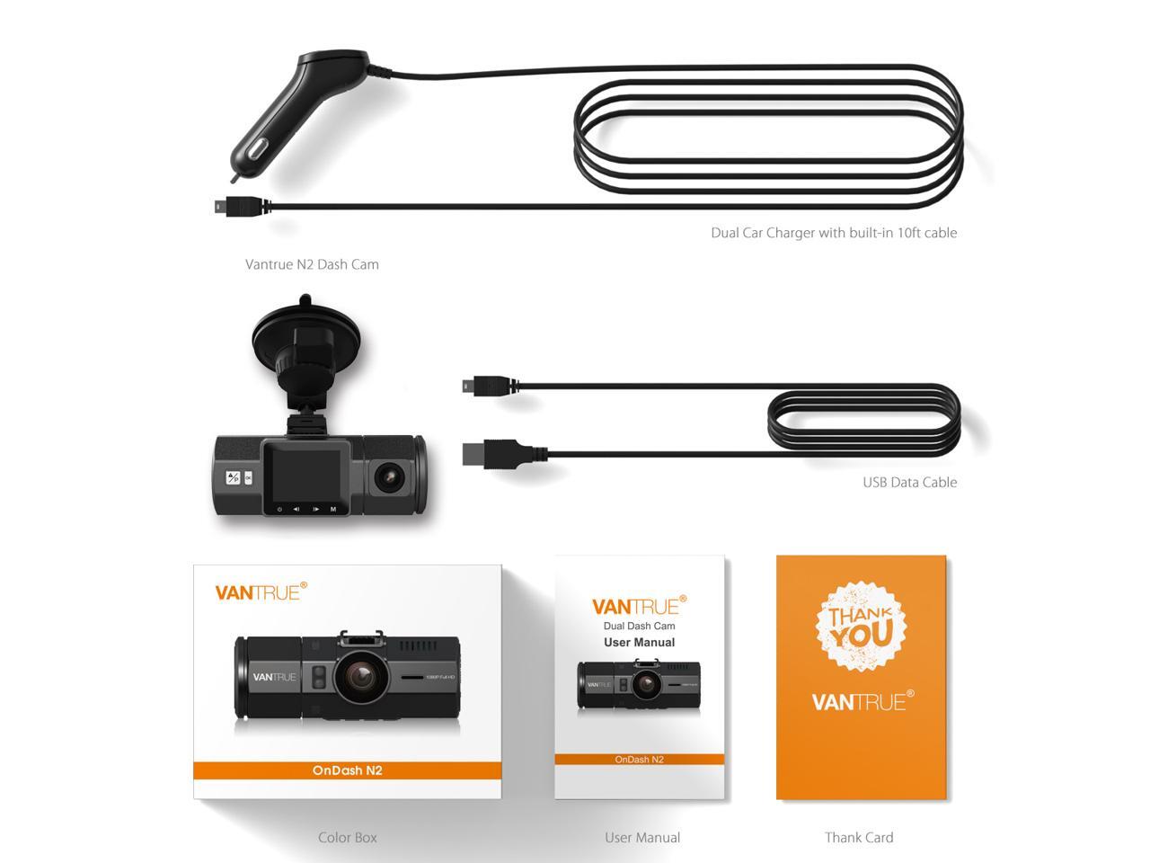 Vantrue N2 Dual Dash Cam - 1080P FHD +HDR Front and Back Wide Angle Dual Lens In Car 1.5" LCD Dashboard Camera DVR Video Recorder with G-Sensor, Parking Mode & Super Night Vision