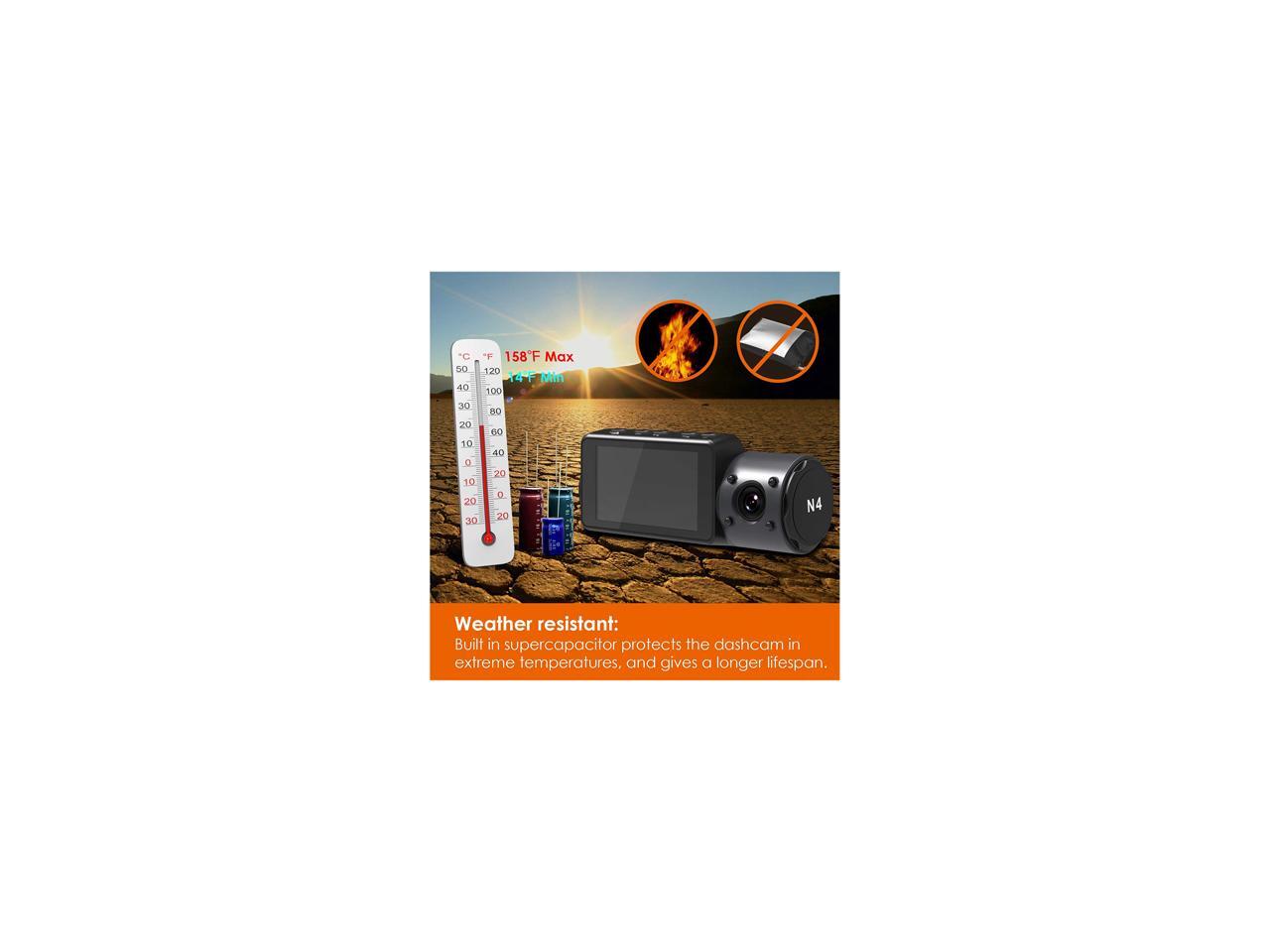 - Three and Dual View Dash Cam: The N4 offers 155° front camera, 165° inside camera and 160° rear camera to record front, inside cabin and road back simultaneously at 1440P+1080P+1080P at 30fps, which gives you all-round protection when you're on the roads. Dual recording mode captures a crystal clear 2560x1440P in the front and 1920x1080P 30fps inside cabin or rear. The front camera can seamlessly record up to 1520p when use alone, enabling clear capturing of license plates and road signs.