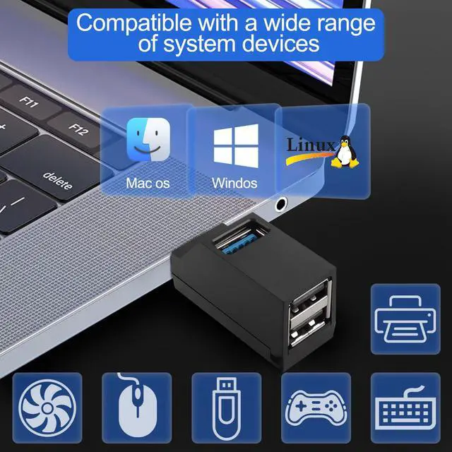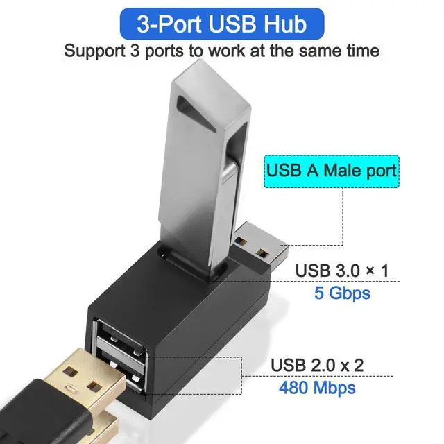 USB Hub, 3 Port High Speed Splitter Plug and Play Bus for Laptop, USB Flash Drive, Portable Hard Drive, USB Cooler, Scanner, Mobile Phone