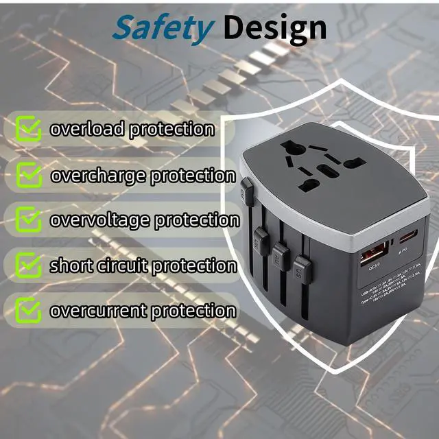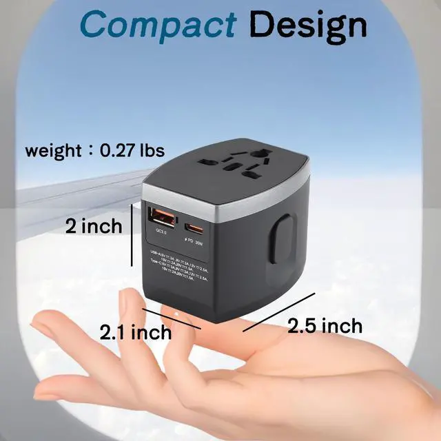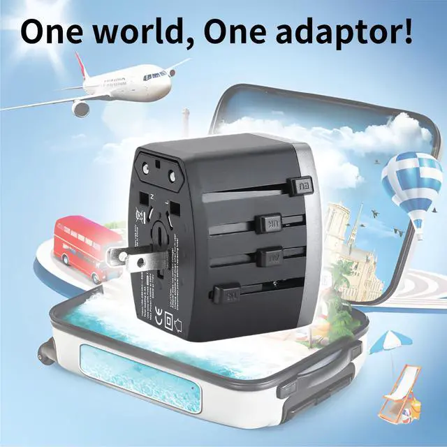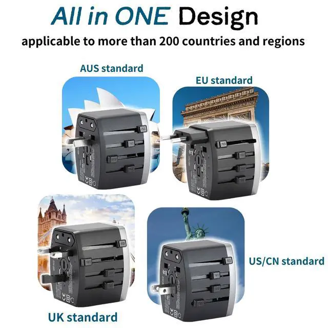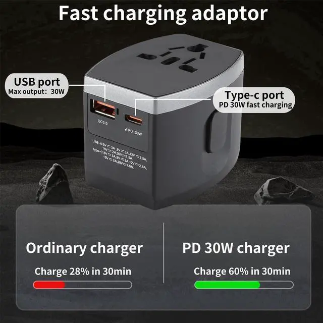 Variforma Universal Travel Adapter, Power Adapter Travel Charger w/ QC 3.0 USB Port and PD 30W Fast Charger, International Plug Adapter, Outlet Converter Worldwide US to Europe EU AU UK US