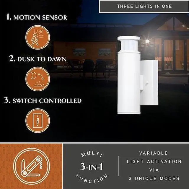 The cylindrical contemporary shape of the Chiasso LED collection adds a modern look to your homes exterior. Dualux dual-level outdoor security lighting is designed to fit your lifestyle and enhance the beauty, safety, and usability of your home's exterior areas. Enjoy the comfort and convenience of continuous bright illumination during the early evening hours with automatic dimming late at night to provide soft, ambient illumination until dawn. Rest assured knowing that whenever motion is detected, on-demand bright illumination will be triggered to keep your property safe and secure. You get convenience, security, and efficiency with Dualux outdoor light fixtures. An integrated LED light source provides energy saving, no bulb changing convenience, low maintenance and long lasting performance.