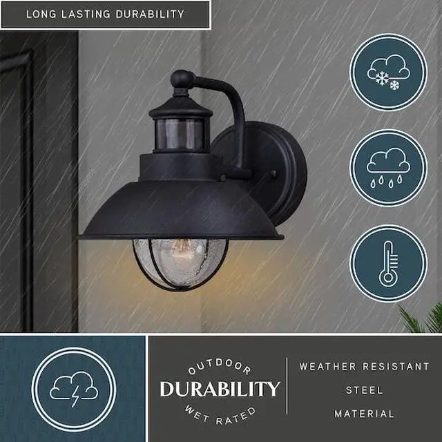 An iconic nautical-style design, the Harwich collection will bring a coastal New England feel to your home's exterior. Dualux dual-level outdoor security lighting is designed to fit your lifestyle and enhance the beauty, safety, and usability of your home's exterior areas. Enjoy the comfort and convenience of continuous bright illumination during the early evening hours with automatic dimming late at night to provide soft, ambient illumination until dawn. Rest assured knowing that whenever motion is detected, on-demand bright illumination will be triggered to keep your property safe and secure. This fixture works with most dimmable LED bulb models. You get convenience, security, and efficiency with Dualux outdoor light fixtures.
