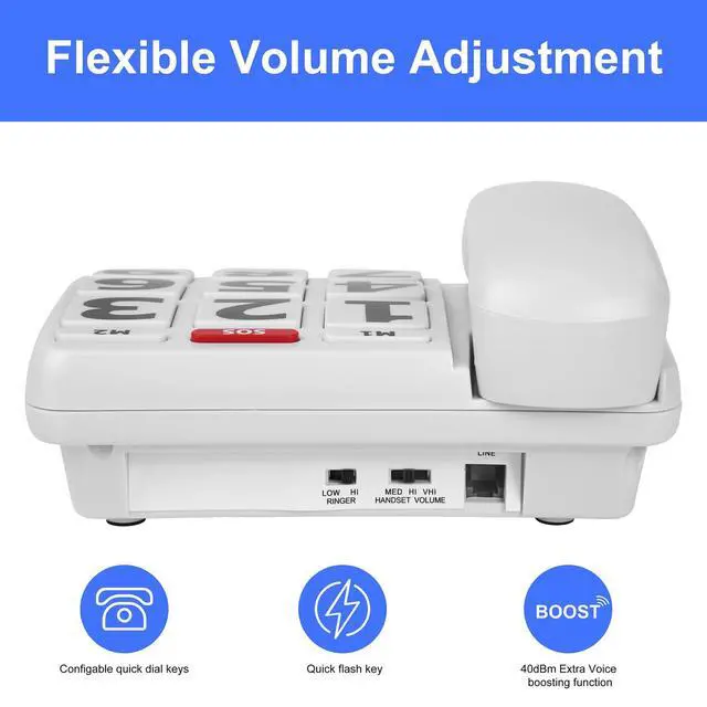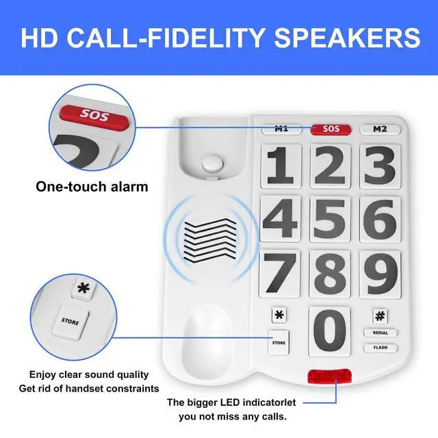 The VDTG ultra large button wired desktop telephone, with huge dialing buttons, huge call indicator light, enhanced volume, and enhanced material, is designed with care for the elderly in all aspects