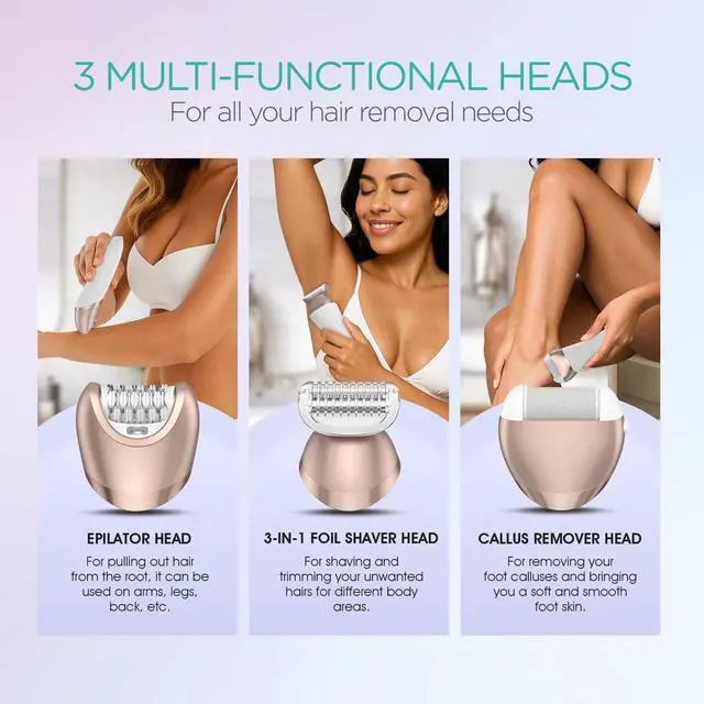 Ergonomic handle allows you to easily grip and control the epilator, helping you better reach to all over your body! No more hard-to-reach area!