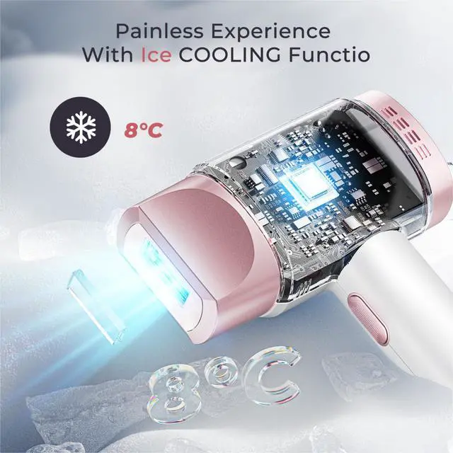 Laser Hair Removal for Women and Men, IPL with Ice-Cooling System for Nearly Painless and Long-Lasting Result at-Home Permanent Hair Removal Device 999999 Flashes for Whole Body Use