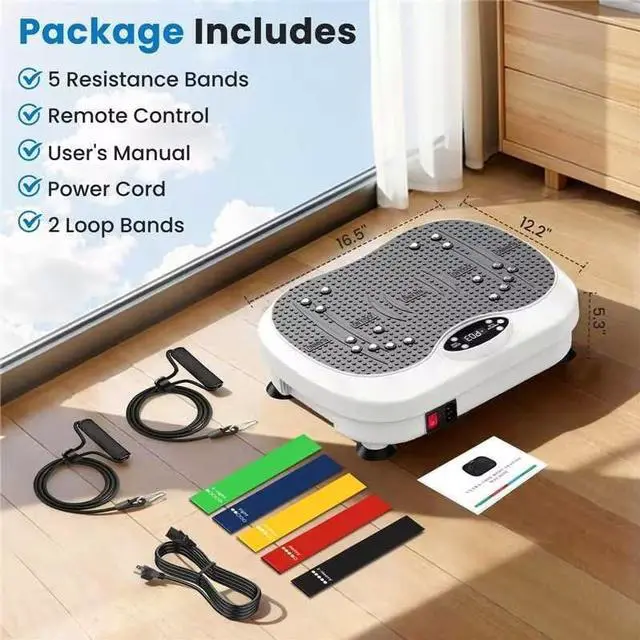 Achieve a Sculpted Body Easily : This vibration plate exercise machine features an ergonomic design with a sleek, modern look with a clear LED screen to track time and speed easily. The equipment is built with a sturdy structure capable of supporting up to 330 lbs, making it both durable and suitable for a wide range of users. Its compact design makes it ideal for convenient home use, effectively overcoming the limitations of traditional aerobic exercise equipment.