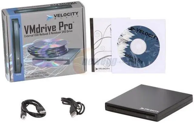 This stylish slot loading external DVD burner offers a more refined look for users on the go. Universally compatible via USB connectivity, the sleek VMdrive™ Pro reads and writes both DVDs and CDs, turning your netbook or notebook into the fully functioning powerhouse of your dreams. An unobtrusive and innovative slot loading design ensures that the VMdrive™ Pro goes perfectly with any device, making it an essential addition for every Ultrabook™ or netbook owner concerned with both aesthetics and functionality. Fully powered by your USB port, this drive burns and reads DVDs at 8x while burning and reading CDs at 24x. Unleash the full potential of your device with the VMdrive™ Pro from Velocity Micro.