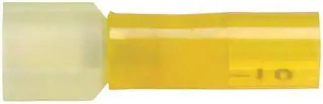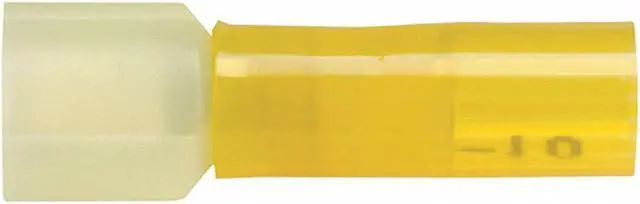 Wire Disconnect, Contact Finish Tin, Contact Material Copper, Disconnect Style Quick Disconnect, Insulation Color Yellow, Insulation Coverage Full Coverage, Insulation Material Nylon with Heat Shrink, Maximum Temperature 221 Degrees F, Minimum Wire Size 12 AWG, Maximum Wire Size 10 AWG, Maximum Voltage 600 V, Tab Thickness 0.032 in, Tab Width 0.25 in, Terminal Type Tab, Termination Style Crimp, RoHS Compliant Yes, Seam Style Butted, Standards UL Listed, Barrel Inside Diameter 0.142 in. This item has been restricted from sale in the following state (s): []