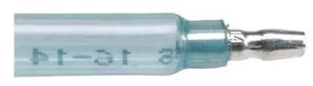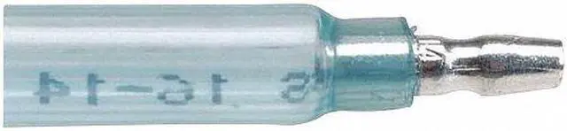 Wire Disconnect, Contact Finish Tin, Contact Material Copper, Disconnect Style Bullet Disconnect, Insulation Color Blue, Insulation Coverage Full Coverage, Insulation Material Nylon with Heat Shrink, Maximum Operating Temperature 221 Degrees F, Minimum Wire Size 16 AWG, Maximum Wire Size 14 AWG, Maximum Voltage 600 V, Tab Thickness 0.032 in, Tab Width 0.156 in, Terminal Type Tab, Termination Style Crimp, RoHS Compliant Yes, Seam Style Brazed, Standards UL Listed, Barrel Inside Diameter 0.097 in. This item has been restricted from sale in the following state (s): []
