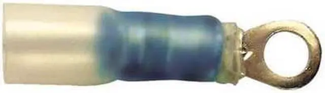 Ring Terminal, Insulation Color Blue, Insulation Coverage Full Coverage, Insulation Material Nylon, Maximum Operating Temperature 221 Degrees F, Maximum Voltage 600 V, Minimum Wire Size 16 AWG, Maximum Wire Size 14 AWG, Termination Style Crimp, Tongue Width 0.57 in, Contact Material Nickel Alloy, Insulation Type Heat Shrink, Minimum Operating Temperature 221 Degrees F, Overall Length 1.5 in, Package Quantity 10