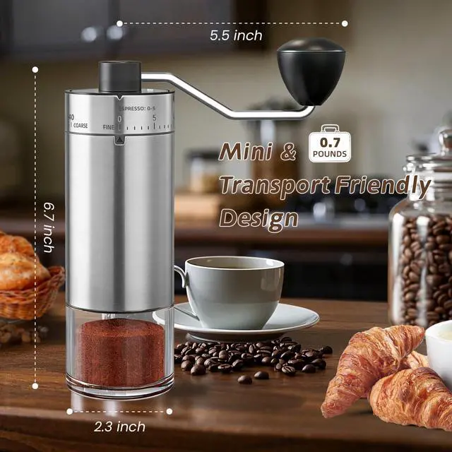 Our precision manual coffee grinder features a ceramic conical burr and 40 external grind settings, giving you full control over grind size. Easily adjust from fine espresso to coarse French press and enjoy richer flavor in every cup.