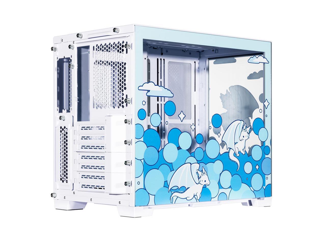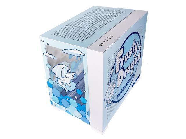 Velztorm Frosty Dragon Custom Art Aluminum Tempered Glass O11 Dynamic Mini Blue Gaming Computer Case, Supports Mini-ITX, Micro-ATX, and ATX Motherboard Sizes, O11D Mini-S