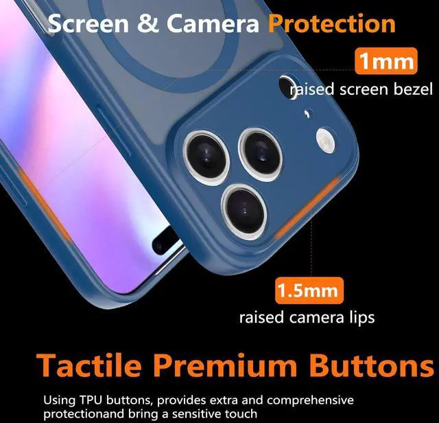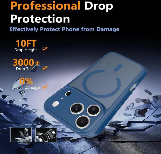 Military-Grade Drop ProtectionAfter Multiple tests, this for iPhone 17 Pro case survives 10+ foot drops on concrete. Reinforced corners & raised bezels guard with iPhone 17 Pro screens & cameras against cracks/scratches.