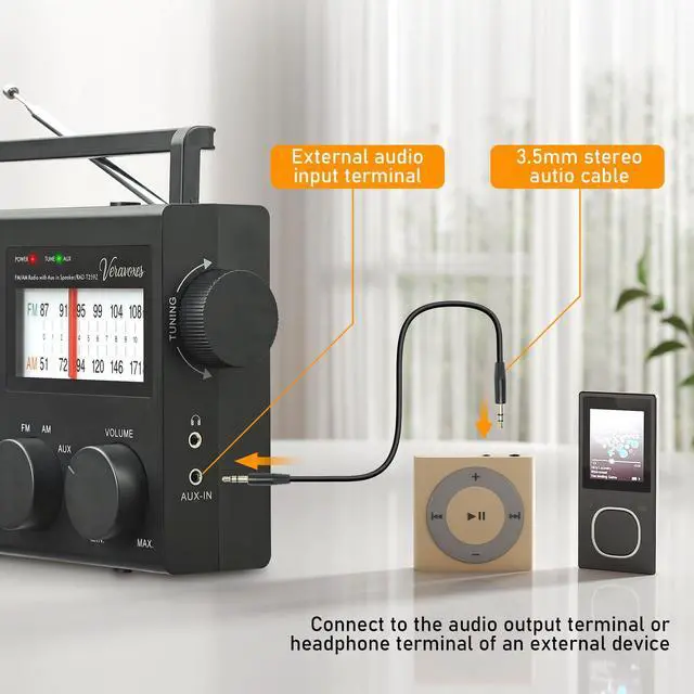 Use a 3.5mm stereo mini plug cable to connect this unit to external devices (such as portable CD players, MD players, digital audio players, etc.), allowing you to enjoy music and audio.