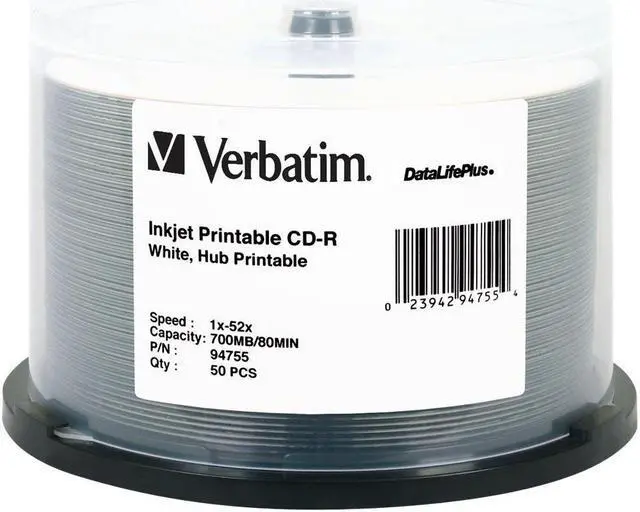 Verbatim offers a wide range of printable discs, including shiny silver, inkjet and thermal printable, with options for a printable or branded hub. Be sure the disc surface type matches the requirements of your disc printer.